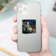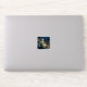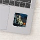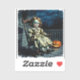A haunting Halloween sticker. A spooky haunted doll in a rocking chair next to a Halloween pumpkin on a front porch. Creepy haunted Halloween vibes.