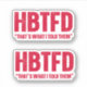 Adesivo HBTFD, foi o que eu disse a eles
