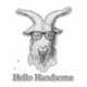 fazenda de cabra hipster com óculos e citação alô