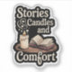 Adesivo Histórias, Velas e Conforto — leitura confortável