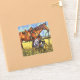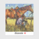 Ilustração no estilo de pintura de van Gogh, mostrando uma cena no campo de uma casa abraçando seu cachorro ao lado de seu cavalo.