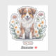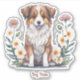Sticker - Motiv: Hübscher Collie von Blumen und Pflanzen umringt, im Aquarell-Stil. Zusätzlichden gewünschten Vornamen/Text. Personalisierbar! Einfach gewünschten Namen/Text eintragen!