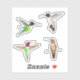 Os adesivos de beija-flor que contêm um beija-flor da Anna, um da Costa, um beija-flor negra e um beija-flor Rufo. Todas as imagens são tiradas de pinturas de aquarela originais.