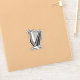 Ícone harpa preto e branco com decoração de nó celta. Texto Personalizado.