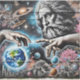 Artistic depiction of God creating the universe, with cosmic energy flowing from divine hands, shaping galaxies and stars. A mystical, luminous scene blending spirituality and the vastness of creation.