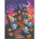Explore essa ilustração encantadora do Halloween, com uma casa assustadora assombrada sob uma lua crescente, rodeada por abóboras e um caminho misterioso. Perfeito para amantes do Halloween!