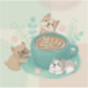 Adesivo Ilustração de Cães e Café Bonitos