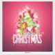 Um decal de vinilo com um design gráfico de Natal brilhante e festivo. O texto diz Feliz Natal e Feliz ano novo. Projetado com um monte em forma de árvore de presentes com flocos de neve festivos, estrelas, bausolas de natal e faíscas brilhantes. Agulhas de pinheiros e ilustração em forma de árvore também estão incluídos nesta imagem de feriado. O fundo é uma cor rosa avermelhada vibrante.