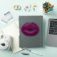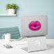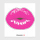 Decal de vinilo/adesivo de contorno com uma ilustração com lábios rosa-quente. Imagem brava e vibrante. Colocado sobre um fundo preto.