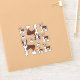 A ilustração original do desenho animado de Destei de um cachorro branco e vermelho casaco, de cor branca, da raça Boston Terrier. O design é colocado várias vezes na folha em diferentes tamanhos.