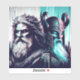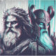 Epic illustration of Zeus and Odin standing together, embodying power and wisdom. Lightning and ravens surround them in a mythical scene, perfect for fans of Norse and Greek mythology.