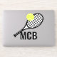 Iniciais de Monograma Personalizadas Contacte o Adesivo Cortado com Tênis Racket e Design de Bola disponíveis em vários tamanhos para o seu laptop, garrafa de água, coleção de adesivos, carro ou como favores e presentes para uma festa de aniversário tênis.