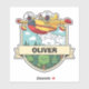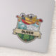 Este adesivo personalizado apresenta um avião de combate a incêndio amarelo e vermelho sorridente pulverizando água sobre uma floresta feliz com árvores alegres e nuvens.