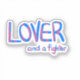 A hand-drawn design featuring the phrase "Lover and a fighter". The lettering was then artistically rendered in blue and pink colours. A simple statement. A nice gift in whichever format you use and for a loved one or as a reminder for yourself.