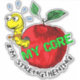 Pau invasor da maçã. "Estou fortalecendo meu núcleo". Pun, brinque com palavras. Pesos de levantamento de verme bonito.
