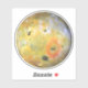 Io é a lua vulcânica amarela de Júpiter. O amarelo é enxofre, e os fragmentos negros e laranja são vulcões.