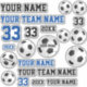Jogador de Futebol do jogador de futebol Sticker. Autocolantes personalizados em futebol, tema de futebol em cores azul e preto. Você pode personalizar os adesivos - seu nome, nome da equipe, número da equipe, número do ano e seu nome na bola de futebol. Você também tem bolas de futebol em tamanhos diferentes.