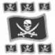Os autocolantes de vinilo de Jolly Roger são cortados com crânios com um olho e espadas cruzadas.
