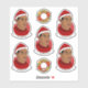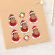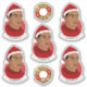 Conjunto de sete adesivos de vinilo cortados com uma ilustração de um feliz jovem africano-americano sorridente, que está vestindo um chapéu vermelho de Papai Noel, em fundo vermelho; cinco adesivos do homem e dois adesivos com uma coroa de Natal; com um modelo de texto personalizável para seu nome ou mensagem