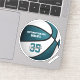 Este adesivo de basquete personalizado apresenta a imagem realista de uma bola de basquete que tem painéis coloridos de cor e branco alternados nos quais você pode personalizar o nome do atleta e o número de camisa mais o nome da escola ou do clube e o nome do mascote - por katz_d_zynes