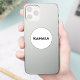 Imagens modernas e ousadas, tipografia minimalista branca e preta, vinilSticker de Corte Personalizado de Kamala. Texto preto em negrito sobre fundo de cor editável em branco.