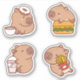 Adicione alguma bondade à sua coleção com esta adorável Kawaii Capybara Sticker Pack! Apresentando uma charmosa capybara com uma rosquinha, relaxando num hambúrguer, bebendo uma bebida, e mastigando batatas fritas, estes adesivos são perfeitos para decorar os vossos cadernos, laptop, garrafas de água e muito mais. Ideal para amantes de capybara e para quem gosta de designs bonitinhos e kawaii.