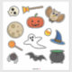 Um grupo de personagens do Dia das Bruxas de Kawaii como coruja, fantasma, jack-o-lanterna, vassoura-de-bruxa, pirulito, caldeirão e chapéu, crânio, lua de cheio, aranha e morcego. Este design é ideal para ser impresso em um adesivo, um pacote com caracteres diferentes. Uma ideia de presente para amantes de halloween, amantes assustadores, amantes bonitinhos e kawaii.