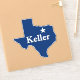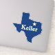 Keller, TX Mapa do Texas com Lone Star DFW Adesivo : Um adesivo de vinil personalizado com o contorno do mapa do estado do Texas e a icônica Estrela Solitária do Texas colocada diretamente sobre o local de Keller no mapa. Faz um adesivo de para-choque ou decoração para casa para residentes orgulhosos de Keller, a jóia da coroa do complexo metropolitano de DFW!