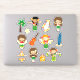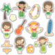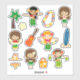 Aprecie seu filho com este pacote de 14 adesivos de moças de desenho animado e elementos havaianos.