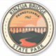 Ilustração do Parque Estadual da Ponte Kinzua no estilo do crachá. O parque é apontado como o local da Ponte Kinzua que se estende por Kinzua Creek.