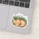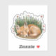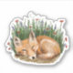 Uma ilustração de um kit de raposa em um adesivo cortado, dormindo em um campo de papoila e lavanda.