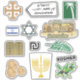 Etiquetas de Jerusalém de vários tipos: monumentos, símbolos e artigos religiosos. Eles são sorteados por você. Perfeito para viagem.