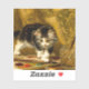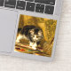 Sticker com a pintura a óleo de Henriëtte Ronner-Knip The Young Artist (1821-1909). Um gatinho preto e branco brinca com pintura e dois pincéis. Um presente adorável para amantes de gatos e entusiastas do Romantismo.