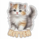 Este adesivo gigante de gatinhos é uma adição encantadora e entusiasmante a qualquer quarto de bebê ou criança, concebida para trazer um toque de conforto e charme para o espaço. A ilustração apresenta um gatinho irresistível e fofinho sentado graciosamente, seu pelo liso em cascata ao seu redor em ondas suaves e luxuosas. O pelo do gatinho é uma bela mistura de tons brancos, cinzas e laranja-ouro, dando-lhe uma aparência tipo calico que adiciona profundidade e realismo à design. Os olhos brilhantes e brilhantes do gatinho são cheio de inocência e curiosidade, atraindo o espectador com seus detalhes expressivos. Seu nariz rosa minúsculo e seu sorriso gentil transmitem uma sensação de calor e brincadeira, fazer-o o companheiro perfeito para as aventuras imaginativas de uma criança. A leve pincelada nas bochechas melhora sua personalidade carinhosa. A cauda arbustiva se curva elegantemente atrás do gatinho, enfatizando sua juventude e animada delícia. O detalhamento do pelo é intrincado e realista, dando ao adesivo uma qualidade tridimensional que faz o gatinho parecer quase tocável. A palavra "KITTEN" aparece corajosamente no fundo numa fonte divertida e de estilo bolha. As letras são cinzas leves com contorno rosa macio, complementando perfeitamente a delicada paleta de cores do gatinho. A borda branca e limpa ao redor do adesivo garante que ele se destaca lindamente em qualquer superfície, seja uma parede, um pedaço de mobiliário ou outros itens decorativos. Este autocolante é ideal para criar um berçário aconchegante e de animais, promover o amor pelos animais de estimação, ou adicionar um toque de capricho e doçura ao espaço de uma criança. Emparelhe-o com outros adesivos animais para criar uma coleção deliciosa de companheiros de bebês animais.