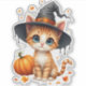 Entre no espírito assustador com este adesivo fofo de Halloween apresentando um gatinho laranja em um chapéu de bruxa sentado ao lado de uma abóbora. Este adesivo de alta qualidade é perfeito para decorar laptops, garrafas de água, planejadores ou qualquer espaço que precise de um toque de charme de Halloween. Ótimo para amantes de gatos e aqueles que gostam de designs sazonais adoráveis!