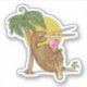 Um desenho animado de um kiwi sentado sob um punga, samambaia prateada, comendo um sorvete. Uma engraçada ilustração temática do verão da Nova Zelândia.