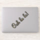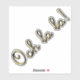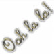 Vinheta-vinil de corte personalizado com uma imagem da frase "Ooh La!" em um roteiro dourado com sombreamento preto. Veja toda a coleção do Cancan Sticker nos CONVITES | Seção Stickers & Labels