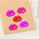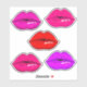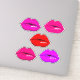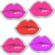 Embalagem com 6 adesivos de lábios brilhantes em diferentes formas e tons de batom.