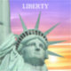 Senhora Liberdade e nascer do sol. O texto pode ser personalizado.
