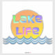 Três filas de ondas de água em frente a um sol brilhante, o texto através do sol, LAKE LIFE. As palavras estão cheias de tons coloridos de verdes, azuis, pinks e púrpura.