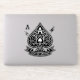 Ás de Espadas, monocromáticas, com filigrana de ornamentado, sotaques relâmpagos e uma faixa de faixa limpa para o seu texto personalizado. Linhas de vetor nítidas e um fundo transparente real fazem com que seja pop em produtos escuros ou leves.