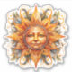 O decal de vinil apresenta uma ilustração de arte digital gerada por IA de uma face solar cósmica/pagã sobre um fundo abstrato celeste. Perfeito para laptop, armários ou até janelas de carros.