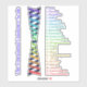 This sticker features a rainbow sprial of energy, representing Abraham-Hicks concept of the emotional guidance scale. All along the scale, in a rainbow serif font, are all the emotions on the scale: Love, Passion, Happiness, Positive Expectation, Optimism, Hopefulness, Contentment, Boredom, Pessimism, Frustration, Overwhelment, Disappointment, Doubt, Worry, Blame, Discouragement, Anger, Revenge, Rage, Jealousy, Guilt, and Fear. Art is on a white background.