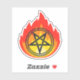 Ce design frappant présente une composition puissante et symbolique. Au centre, un pentagramme inversé, étoile à cinq branches pointant vers le bas, est inscrit dans un cercle noir. Cette forme géométrique audacieuse est placée devant un fond stylisé de flammes.