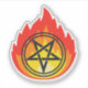 Les flammes, représentées avec des dégradés de couleurs vives allant du rouge intense à l'orange et au jaune lumineux, créent une aura dynamique et énergique autour du pentagramme. L'ensemble est posé sur un arrière-plan gris clair et neutre, ce qui fait ressortir le motif central avec force et clarté.