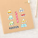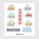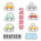 Personalize estes legal e bonitos autocolantes com o nome da sua escolha e duas outras palavras. Este adesivo de vinilo vem com seis carros coloridos e caminhões com motoristas de animais.