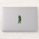 Legal como um adesivo de pepino. Engraçado desenho de pepino verde, vestindo tons num colete de couro e botas marrons tão legal quanto legal.