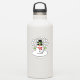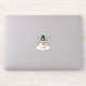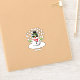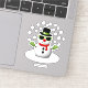 Autocolante personalizado único para decoração, artesanatos, celebrações... Ilustração de inverno de um legal boneco de neve com flocos de neve, óculos de sol e luvas verdes, lenço vermelho e chapéu preto.