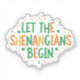 Time for some mischief! Get the party started with this hilarious ""Let the Shenanigans Begin"" sticker.