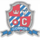 Estilo de cavaleiro blinda a crista monograma letra C autocolantes gráficos em tons de vermelho, azul e cinza. Personalize com seu próprio nome ou nome de família começando C, lendo atualmente Connor. Ideal para personalizar seus pertences se seu sobrenome ou nome começa com a letra C. Cabeça, coroa e desenho de escudo e arte gráfica e design por Sarah Trett para www.mylittleeden.com